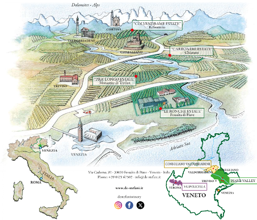The De Stefani family originates in Refrontolo, a little village in Veneto Italy, as in official documents of 1624. On these hills of the Conegliano Valdobbiadene Unesco World heritage site, in 1866 the founder Valeriano De Stefani individualized a unique terroir to produce great wines.